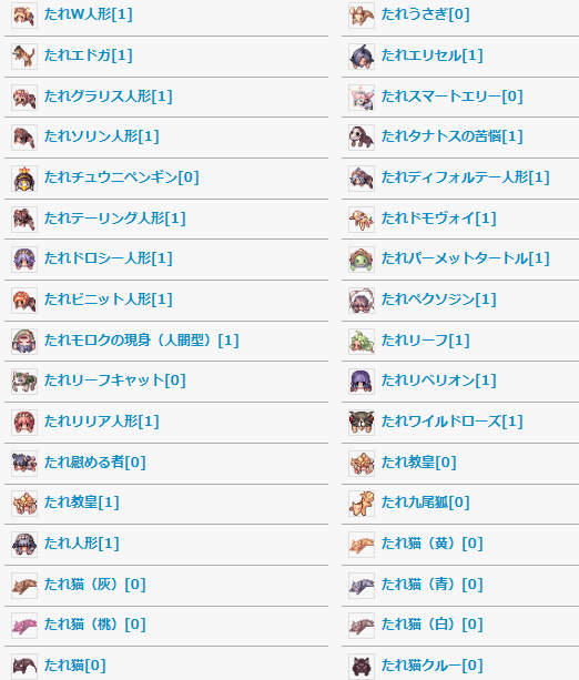 たれ人形一覧「たれ付き焼き肉」ってどんな装備だよって思ったらタレが付いた焼肉だった