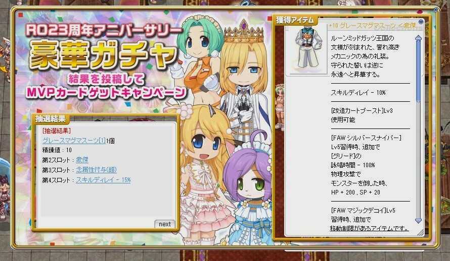 毎月、フリマに参加ありががとうございます!装備やアイテム、お金の循環によってROに活気を与えられて居たら幸いです。