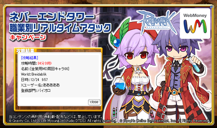バイエリくんの215魔法スキルのほう。倍率12500%の力でようやく1000Kダメージを超す。物理のほうはホムのHITが基本もうベースレベル分しか伸びなくてまず当たらないのでまあ、うん…