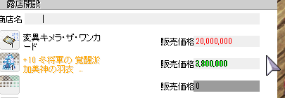 装備調整のため露店中ですよろしくおねがいいたす。世話になったな、インター1号