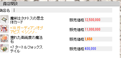 装備調整のため露店中ですよろしくおねがいいたす。世話になったな、インター1号