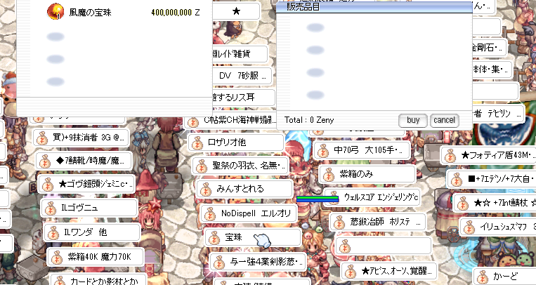 宝珠とだけ書いてある露店は、かなりの確率で風魔の宝珠を300~400M程度の値段で売っている露店です。多分、螺旋風魔の宝珠と書くと詐欺だと断定されるからでしょう。よく似たアイテムを高値で出しているだけなら、詐欺であるとは断定できませんからね