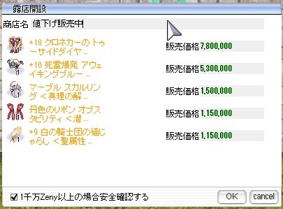 N鯖(220:241)で、皿、EM用の装備売ってます。よろしく~