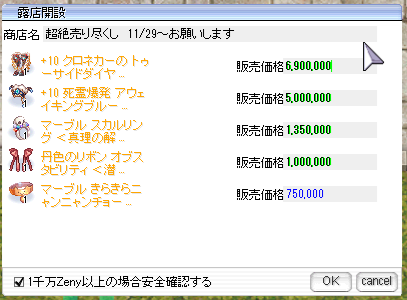 N鯖(220:241)皿・EM装備売ってます。よろしく~