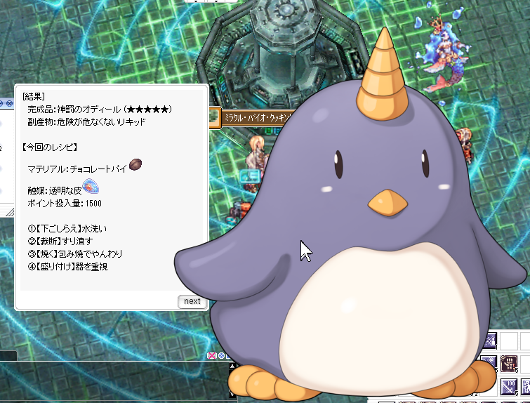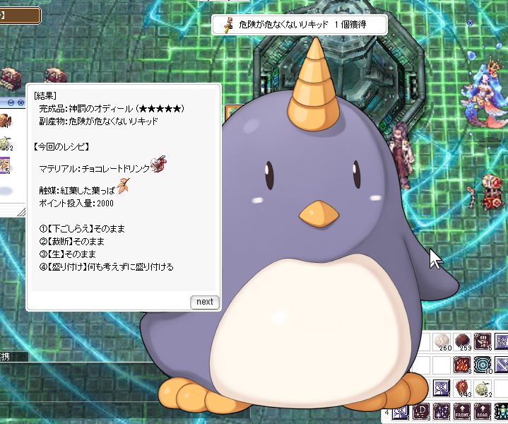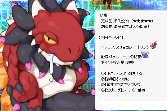 「精霊がディルビオ」の今日だから、同じレシピでもオディールになった、というのも無関係ではないように思う・・・が、こういう法則性が他にあるのかは別途確認しないとわからない。