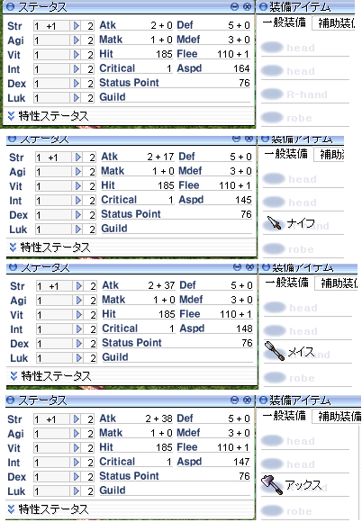 参考。ドルイド、転職直後の武器による攻撃速度の差。四次職になった後にやったほうがいいような気もするけど、とりあえず。