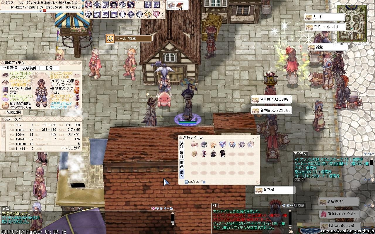 ♀はメディックに星?挿して靴をアルカナにしたら終わりで、♂は…中段に魔力12つけてアクセ片方大神官?