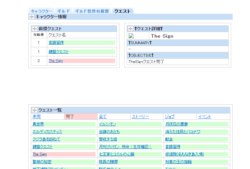 @Ishica ROSNSのキャラ情報でキャラごとにクリアしたクエ一覧でみれたのでゲーム内で確認するよりは楽かも?