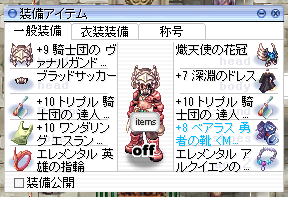 武器:+9マリシャス達人<闘志9ダブル>→+10白騎士達人