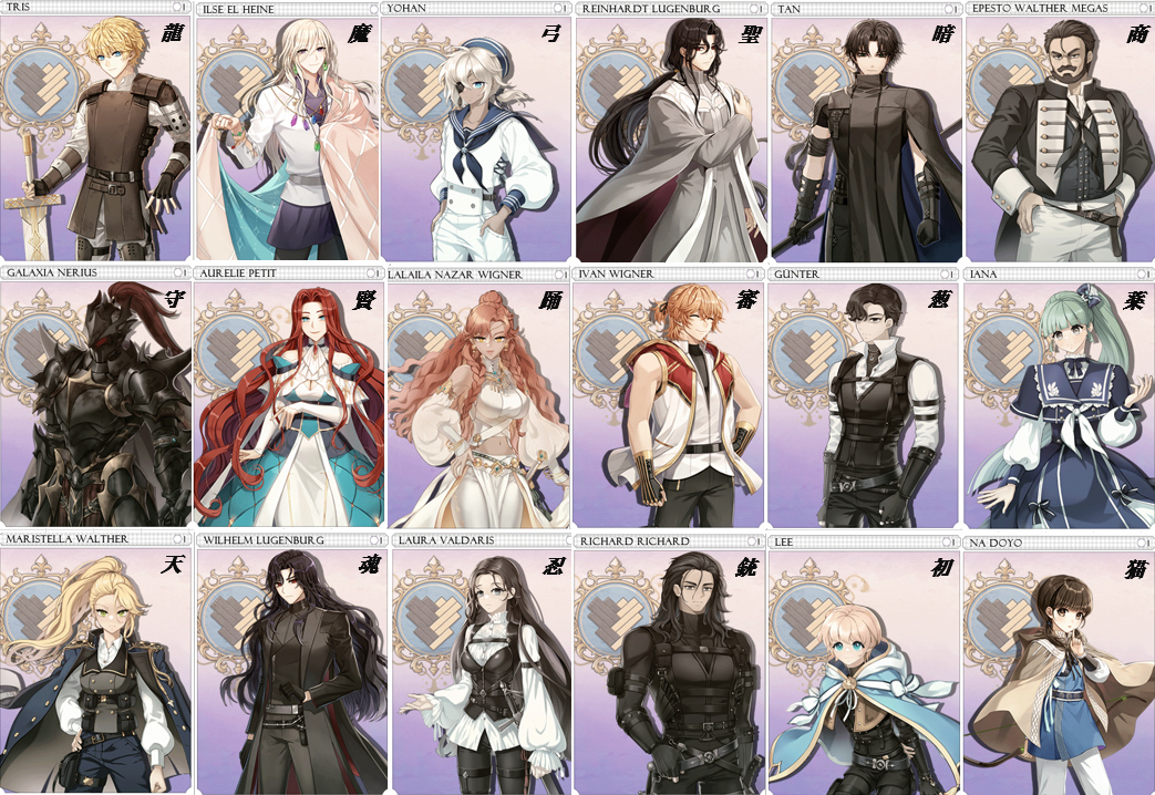 毎週売りに出すために調べていると名前と職が一致するようになるのですが、まだまだわからん!という人用にどうぞ。漢字一文字は勝手なイメージ(一部公式から流用)です。