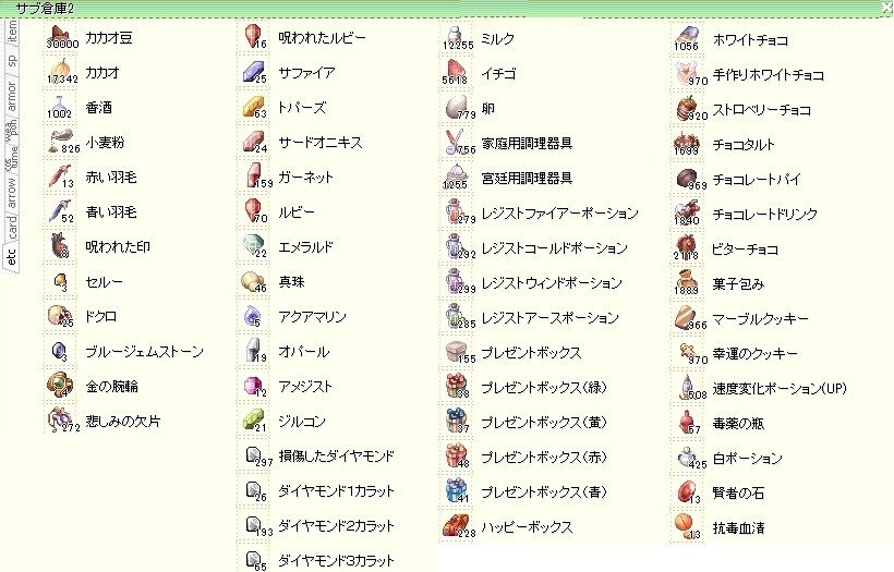 メインアカの各倉庫のカカオ豆がカンストしそうだからビターチョコ作成して一気に減らそう。