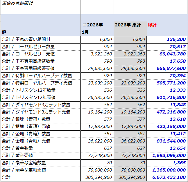 今月の王家の青箱開封の儀は結構な上振れ。そしてもう少しでダイヤ3カラットと黄金がカンストだ。