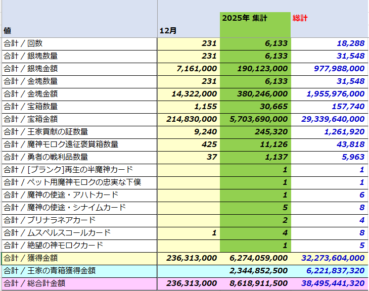 12月も出たってことでムスペルスコール君が落としたゾ。累計8枚目の撃破数18,273体目。