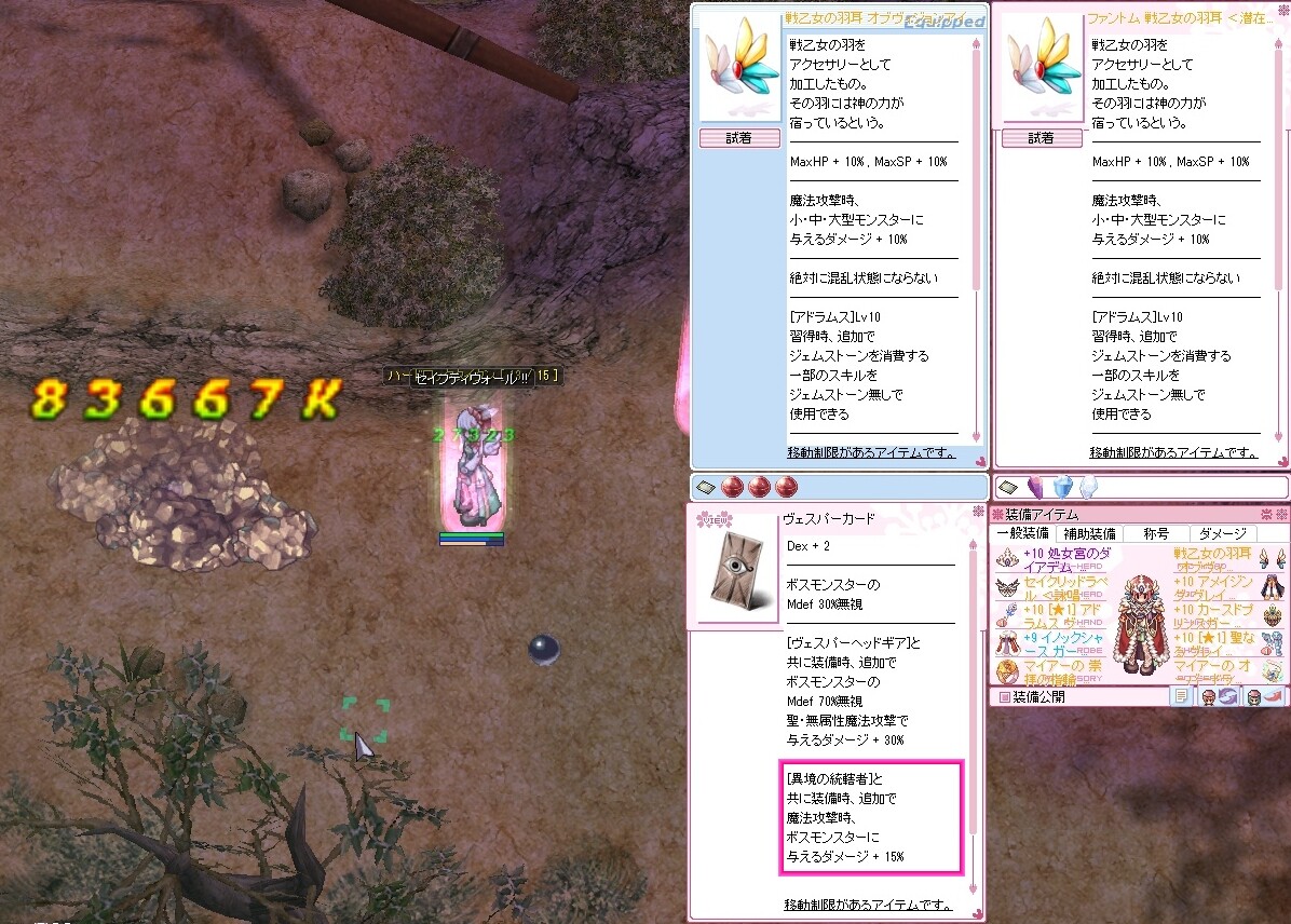 ディレイ100%カットする為に盾をカースドプリンスガードから白羊宮のシールドに変更したので不屈が無い為にEQギミックから逃れるのに一苦労です。EQが来るまでにどこまでHPを削れるかですが、常に精神衝動が飛び交う中で真理と黒翼が上手く発動する事を願うしかありませんね。何とか1分以内にクリアしたいところですが、EQ平原とEQ地下洞窟仕様にしている念鎧とカードの組み合わせをいじらないとダメっぽいです。