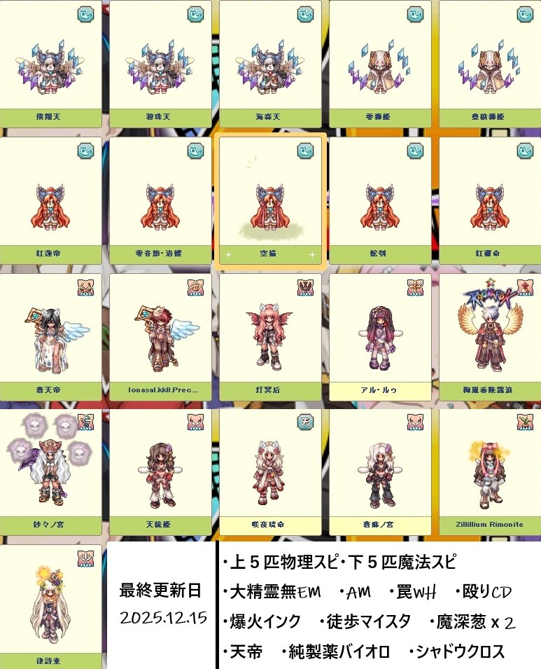 21キャラスロのラスト更新(だといいな)・全員セレスティアルパッケ装備です