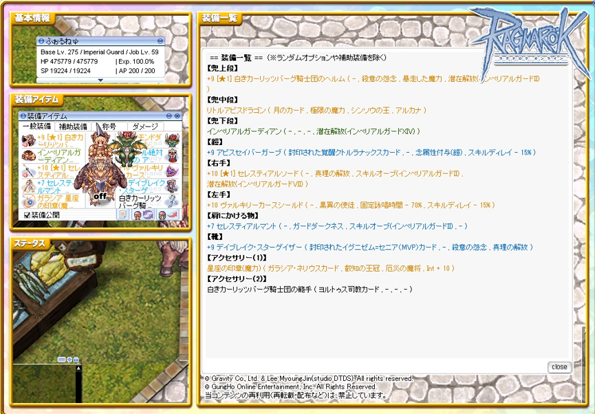 印章ガチャきついので、最終はアルムタートとセレスティアルリングの予定です。中段をセレスティアルインテのMDEF無視ですね。