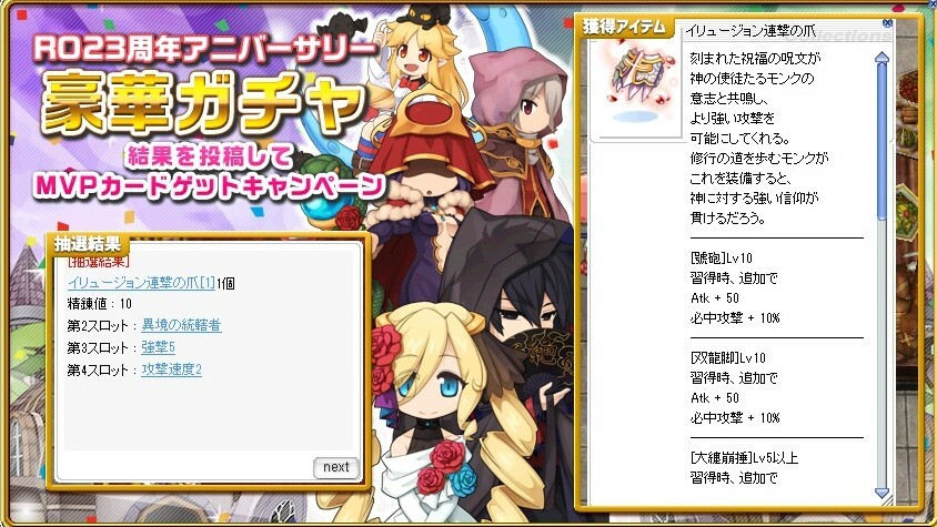 揃えるにしても杖と頭とアクセだろうからまあそのうち\(^o^)/ 半端に導入しても4次スキルメイン火力にできるかどうかの話になるからなぁ。