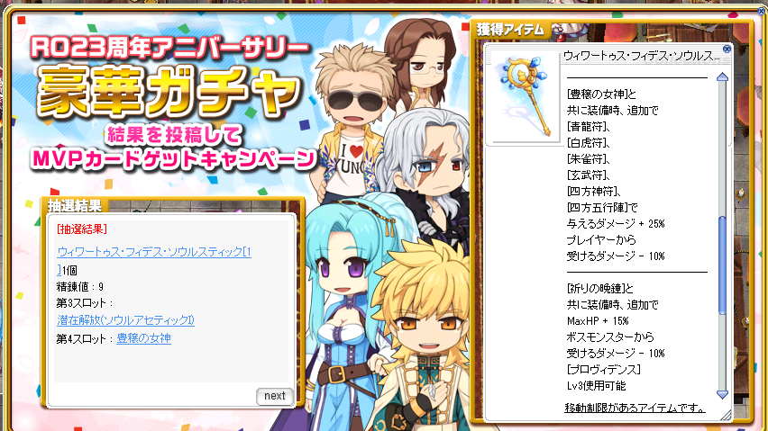 ついに手に入れた!私にとって超莫大なzenyと引き換えに長く使える装備でありますように