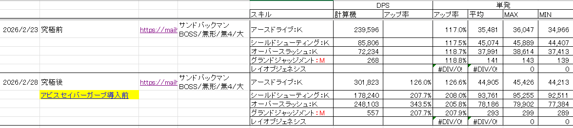アースドライブは26%アップ時間サクレの効果で4次職スキルが倍になった(EDにしか目が行ってなかったのでなんで??と驚いてた)