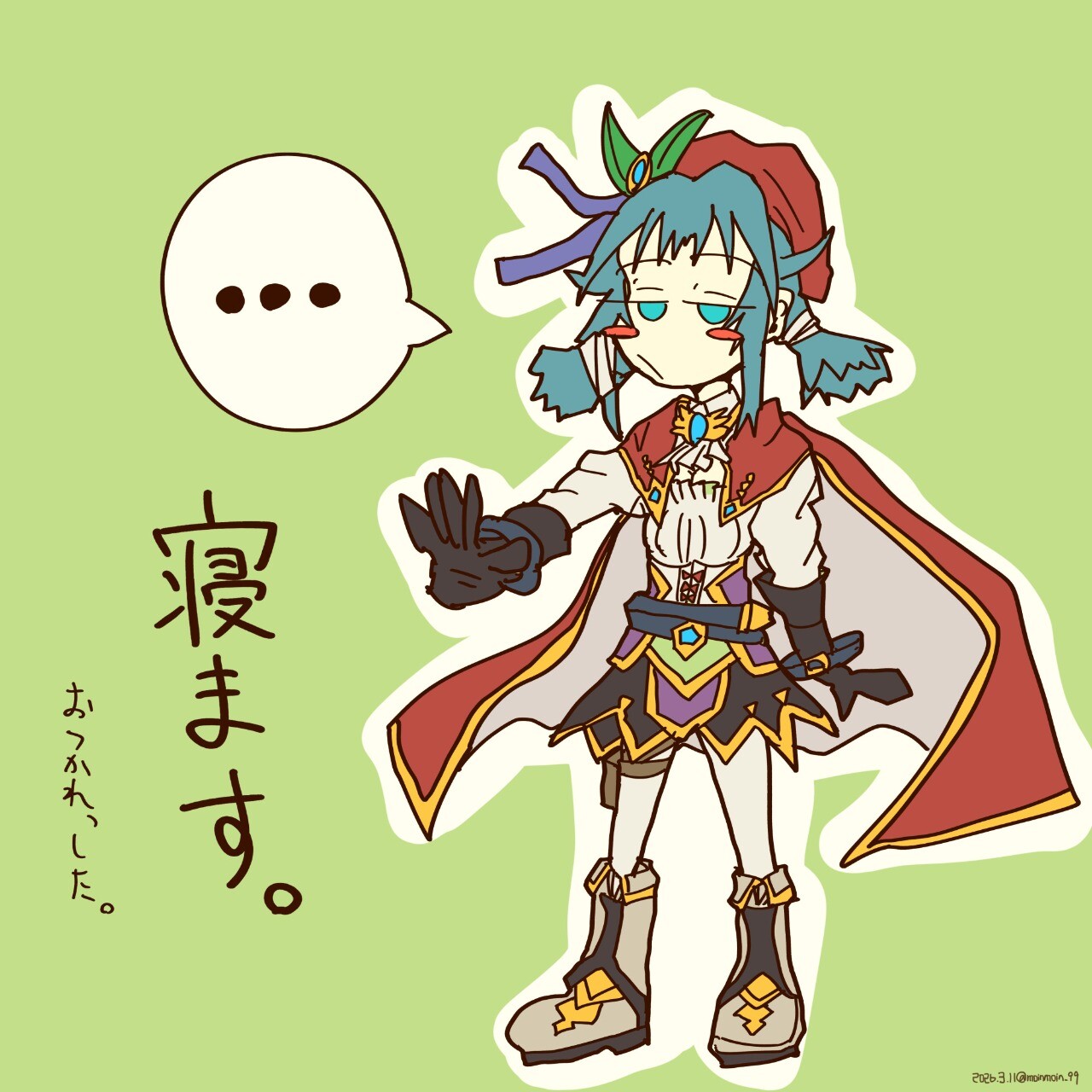 最近苦手な男性キャラを描こうと挑戦して描いたマイバイオロ、よく見ても見なくても、衣装がくせつよだと思いました。もっと男子を描くのうまくなりたい。