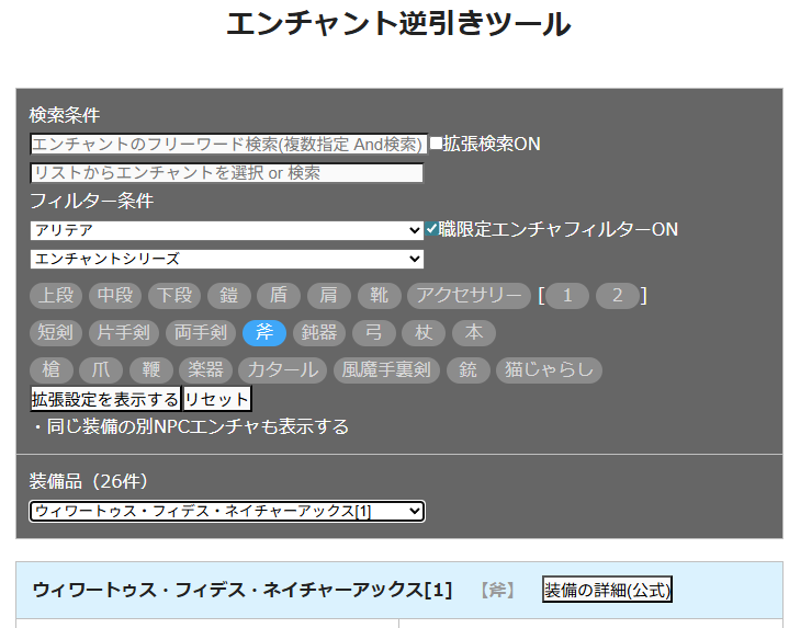 エンチャント逆引きツールをドルイド関連対応しました