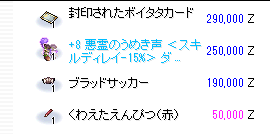 欲しいもの資金がまだ足りないので値下げしつつ露店中。倉庫をいろいろ確認していたら、いつ入れたか不明な未鑑定セトの恩寵とか出てきてびっくりした。たぶん、1年以上入れっぱなし。これも出品!