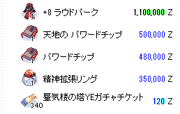 究極キャンペーン、今年は13口。今年は以下を用意。+7★グレータードラクルホーン+9トゥーサイドダイヤモンドブーツ未精錬ブレッシングオブイグドラシルその他、+7トゥーサイドダイヤモンドブーツなど。で、途中経過。9口分使用したところで、+9★グレータードラクルホーン+8ブレッシングイグドラシルが出来た。究極4口残、微妙2枚残。改良エルなし。さて、残り4口をどう使うか・・・。