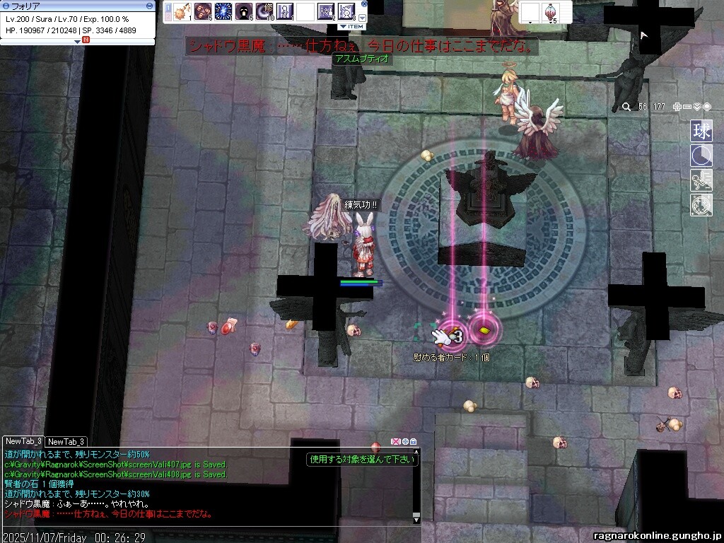 懐かしきtips機能実装ということでちょっと得するかもしれないRO豆知識。防御無視を合計200%にすると、アス厶がかかっていても防御無視ができるぞ!防御無視100%までだとアス厶と相殺されて、防御無視できないのである。