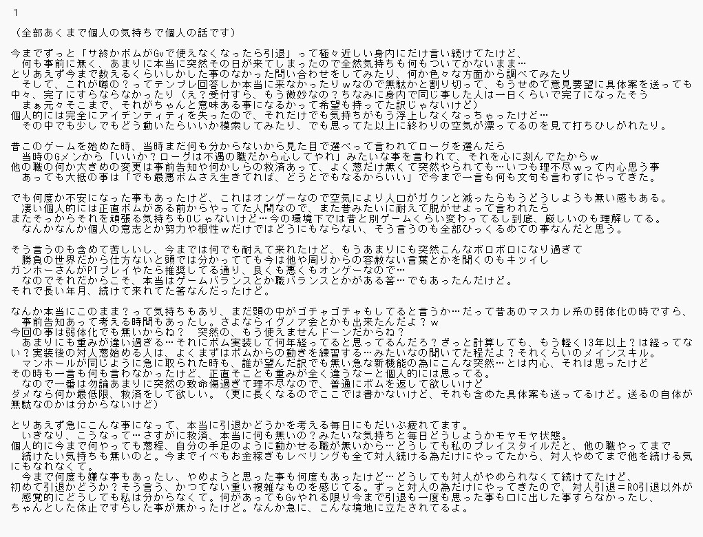 どう転ぼうがこれ以上ここに何か追記する事も特に無いので、もしこのまま引退になった場合は…今まで関わった方お世話になった方には、本当にありがとうございました。(と言っても作り直し余生アカで素性も特に出してないので、この名前での知り合いもほぼいませんが)