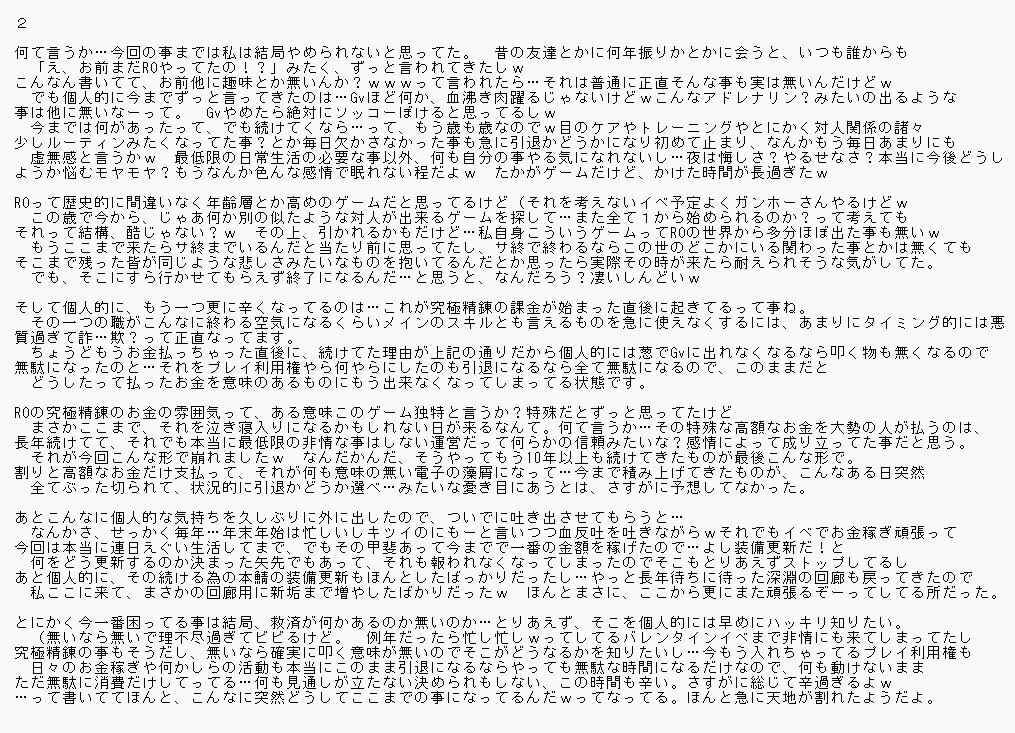 最後になるかもだし、余生になってからROの気持ちを外に出す事ほぼ無くなったので今回だけ勘弁してほしい。