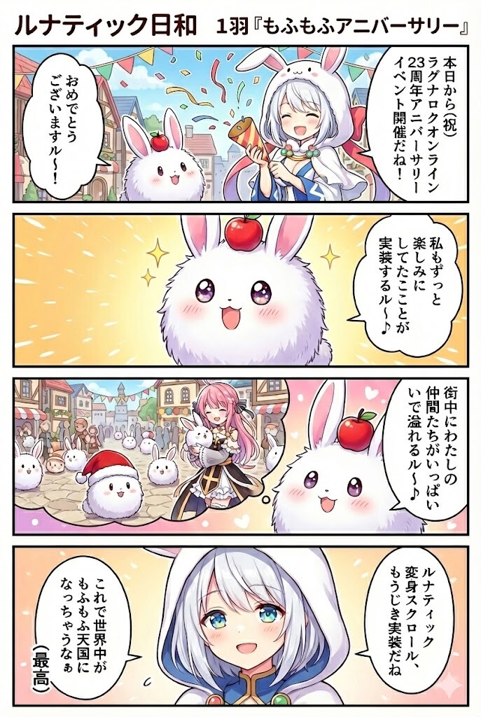 RO4コマ漫画:ルナティック日和1羽『もふもふアニバーサリー』※えーあいです