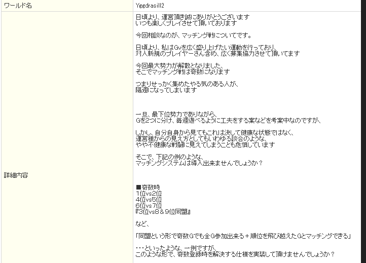 また、乱戦の他Gの方々、マッチング参加報酬欲しいな、という人、飛入り歓迎です。