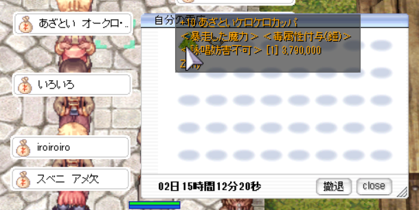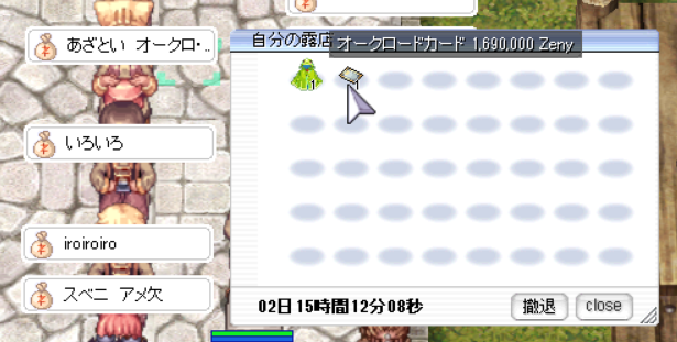 N鯖にて+10あざといケロケロカッパとオークロードc売ってます。値段交渉もできますのでお気軽にどうぞ~座標は289,112です。