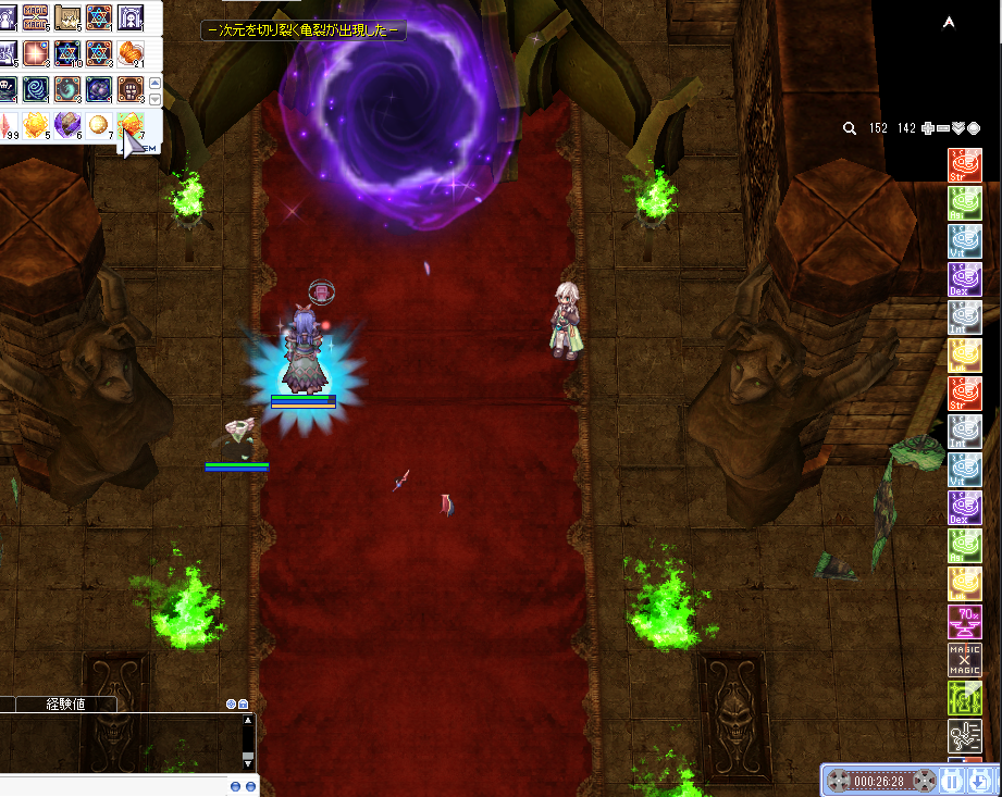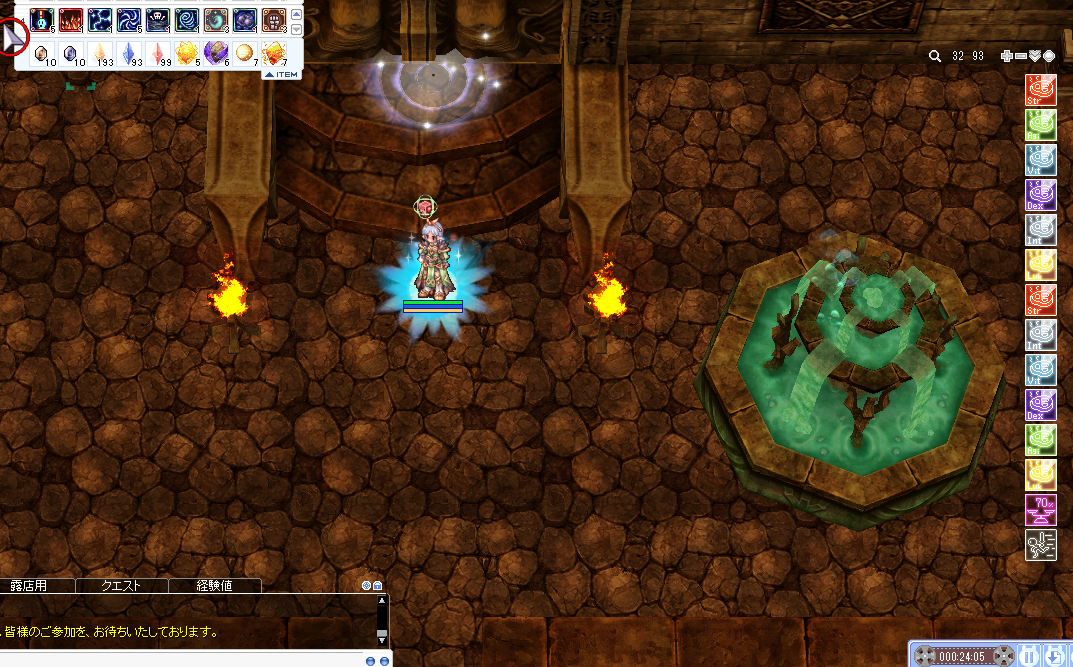 検証のため覇王の間で待機中。75Fから100Fの噴水までは11分以内。