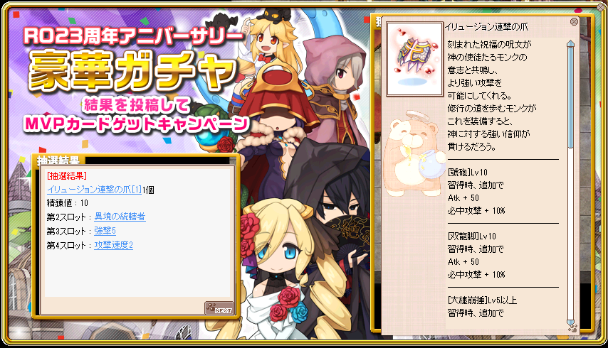 マントはこのあと配られるエンチャ剤で運が良ければ念や聖の75%耐性がつく