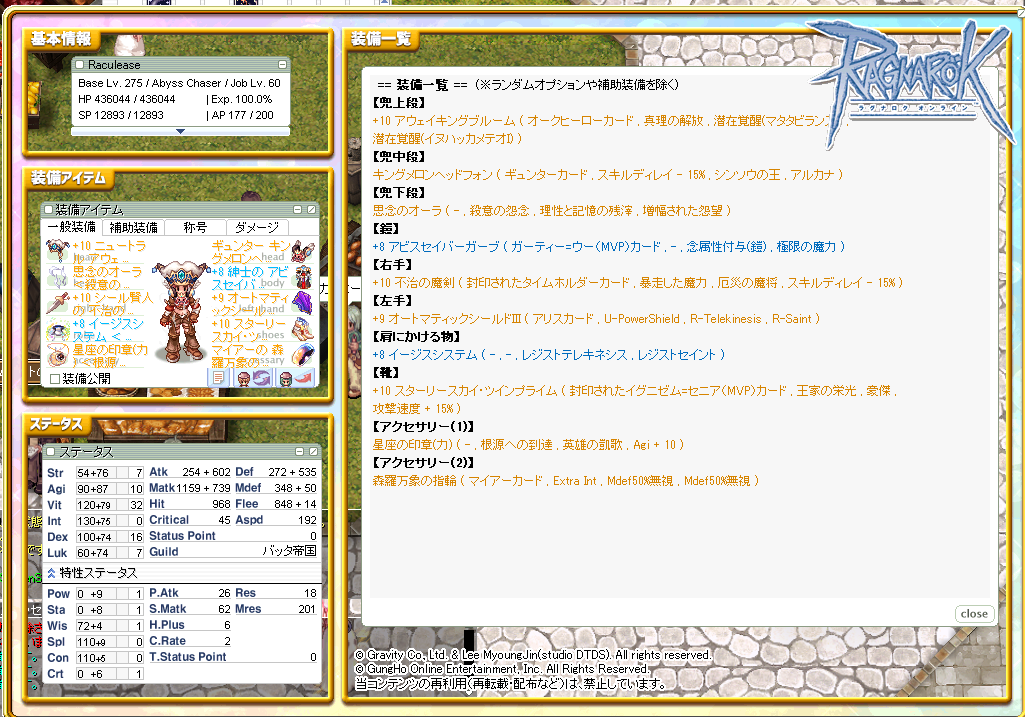 ほぼ無課金でも1年間頑張ればこれくらいの装備にはなれるんじゃないかな?