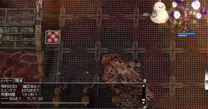 ユンケアは最近討伐できるようになりました。この装備で大体1分30秒切るか切らないかのコース。