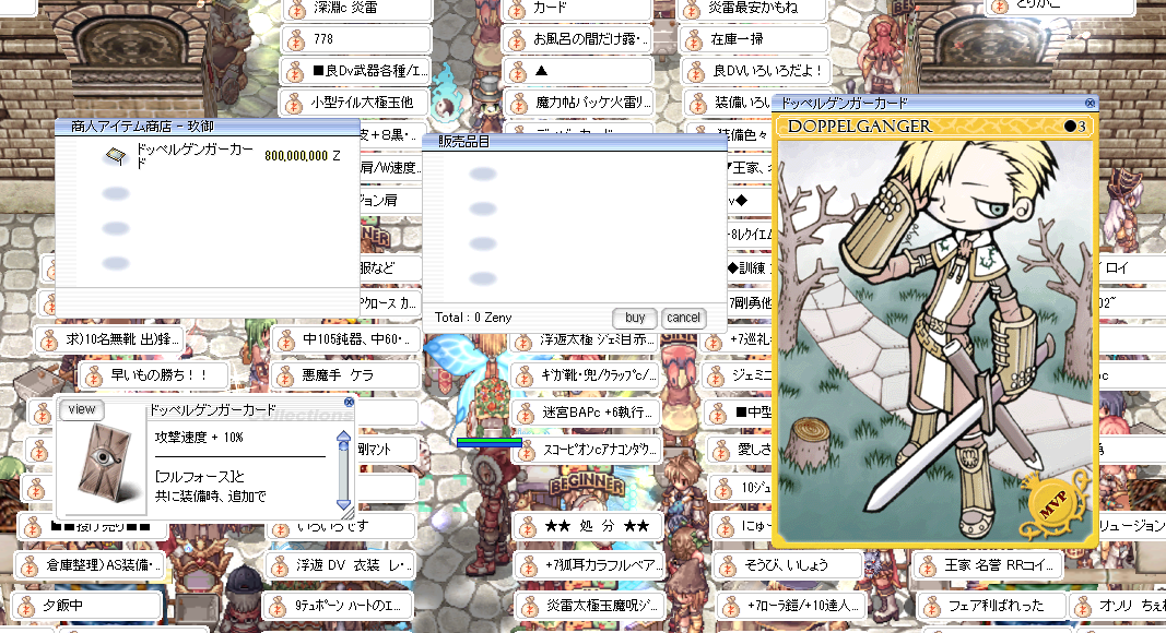 そう言えば、去年のアニバーサリーイベントでドッペルゲンガーカードの説明が変更され、具体的にどれくらい攻撃速度が上がるのか明らかになりました。でも、正直な話、MVPボスのカードなのに攻撃速度が10%しか上がらないのはちょっと…という印象です
