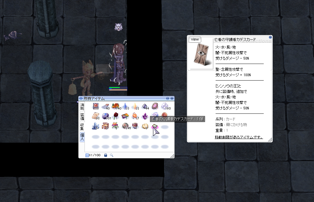ドレイクcが挿さりっぱなしのロイヤル両手剣(RKは消した)次にキャラ作り直しの時にLv200 RKを召喚してカードを剥がすのだ決して忘れるな…