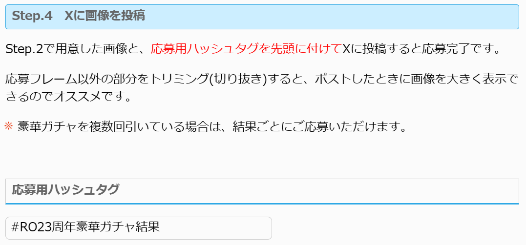 RO23周年アニバーサリー豪華ガチャ 結果を投稿してMVPカードゲットキャンペーン