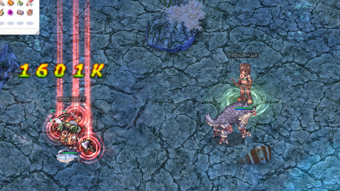 ABちゃんをちょっと動かしてみたりアドラ&ジュデ狩りもなかなか楽しそうですねあと、かわいい(重要)ダメージが悲しいことになっているのは…うん、仕方がないのです何しろミミミ装備ですからねーせっかくかわいくしたのだし、運用したい…けど装備即ちおゼニーが…というジレンマメインジョブがレンジャー系でして…装備がほぼ共有できないのですよね1000Gください
