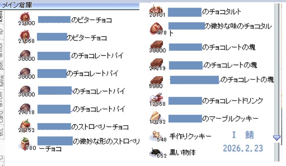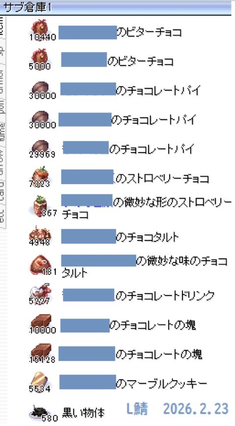 長年の蓄積されている中で・・・おかしいな?数時間前までチョコレートドリンク600個だったはずなんだか(・▽・)?(延々ビタチョコ作っていたら・・やっぱストックは5桁よな!!・・と、頭のネジが飛んだ!)
