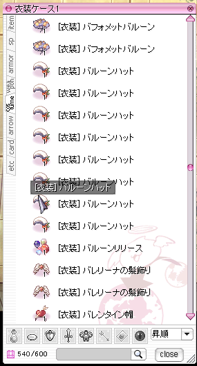 衣装倉庫に放り込めるだけ放り込んだら、ごっそり倉庫が空きました。何で540個も衣装が入っていたんだろうか。。。
