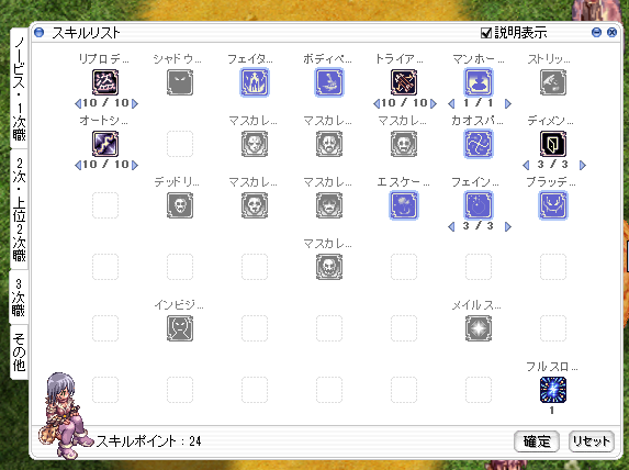 仕方がないのでスキルをさすがに振りますか。。。さて、どれに振ろう。
