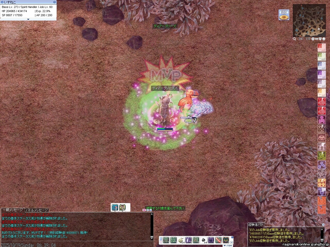 新EPでクエストひたすらやってて全く行けてなかった幻影に、ポリンの群れに猫が興奮したりマンドラと引き寄せ重なって魔女で1ミスしたりしましたが無事登頂、やっぱり幻影楽しい