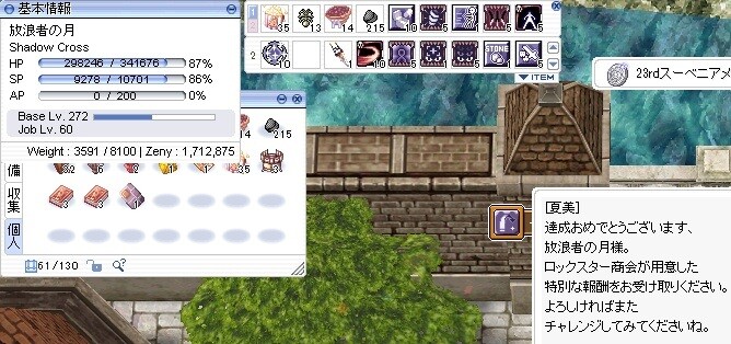 ジェネ系列(バイオロ)では初の登頂。ロイヤル武器に持ち替え忘れて反射4を数回した以外は特に問題なく。 でもやっぱり7x7である以上バクステとは違った移動感のこちらの方がやや遅い。