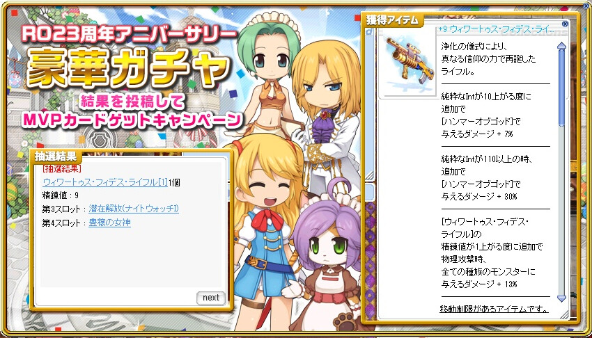 17くらいから一気に駆け抜けた結果が未所持かつ育成予定のない職のフィデス武器だなんてそんなぁ・・・、てなわけでおファンシーお先に失礼。