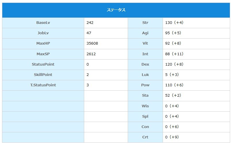 おファンシー含め現在育成中のバイオロちゃんはこんな感じ。割と最近にステ無詠唱のために振りなおしたがSTRは相変わらず130。