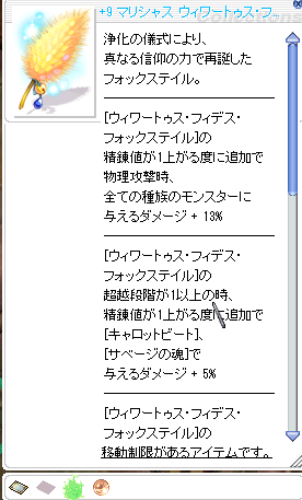 +9セレスティアルフォックステイル出来た!取り敢えず明日はこれで楽しもうフィデスは+8で弾切れ今度こそ!