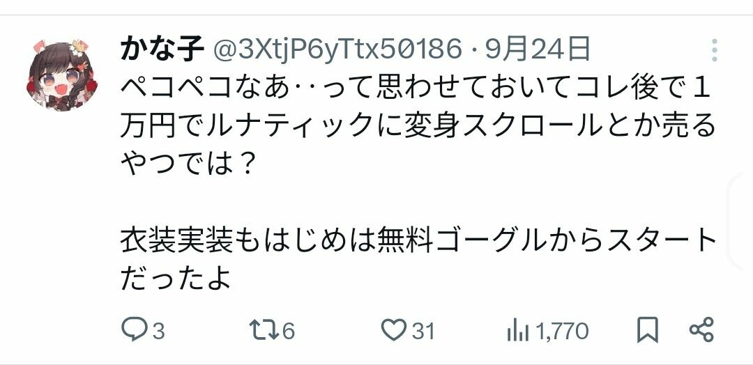 ペコペコなあ‥って思わせておいてコレ後でね1万円でルナティックに変身スクロールとか売るやつでは